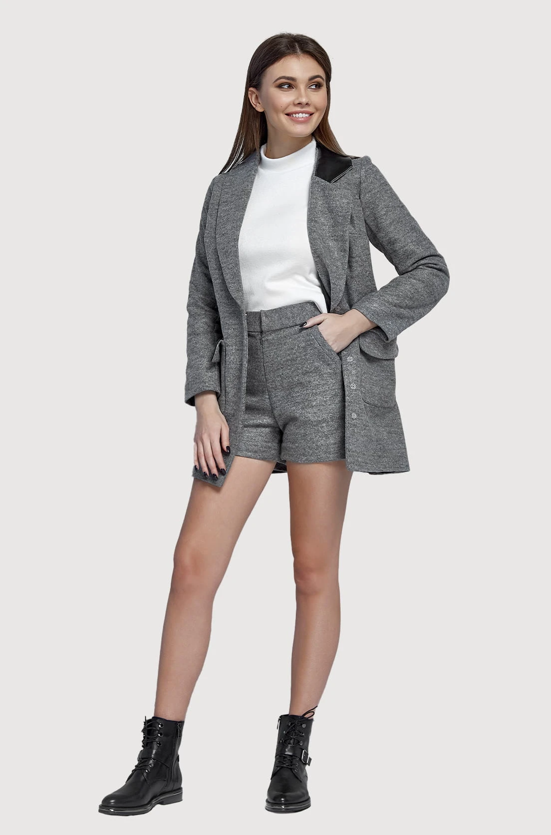 Nasza marynarka w szarym melanżu to esencja stylu i komfortu. Wykonana z dbałością o detale, z podszewką z 100% bawełny, co gwarantuje przyjemne uczucie na skórze i dobre oddychanie materiału. Główny skład materiału to 80% bawełny i 20% wełny, co sprawia, że jest ciepła i miękka.
